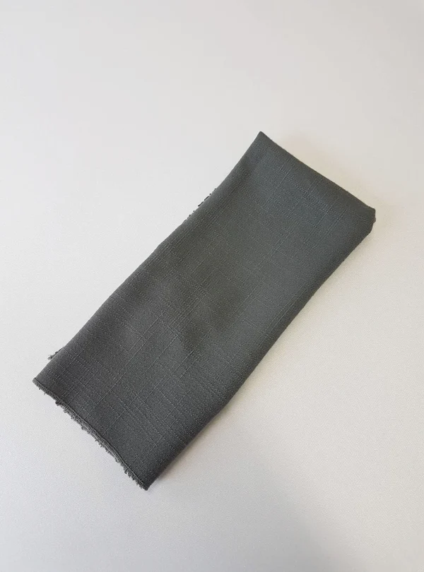 These textured linen napkins match our charcoal grey runners and overlays