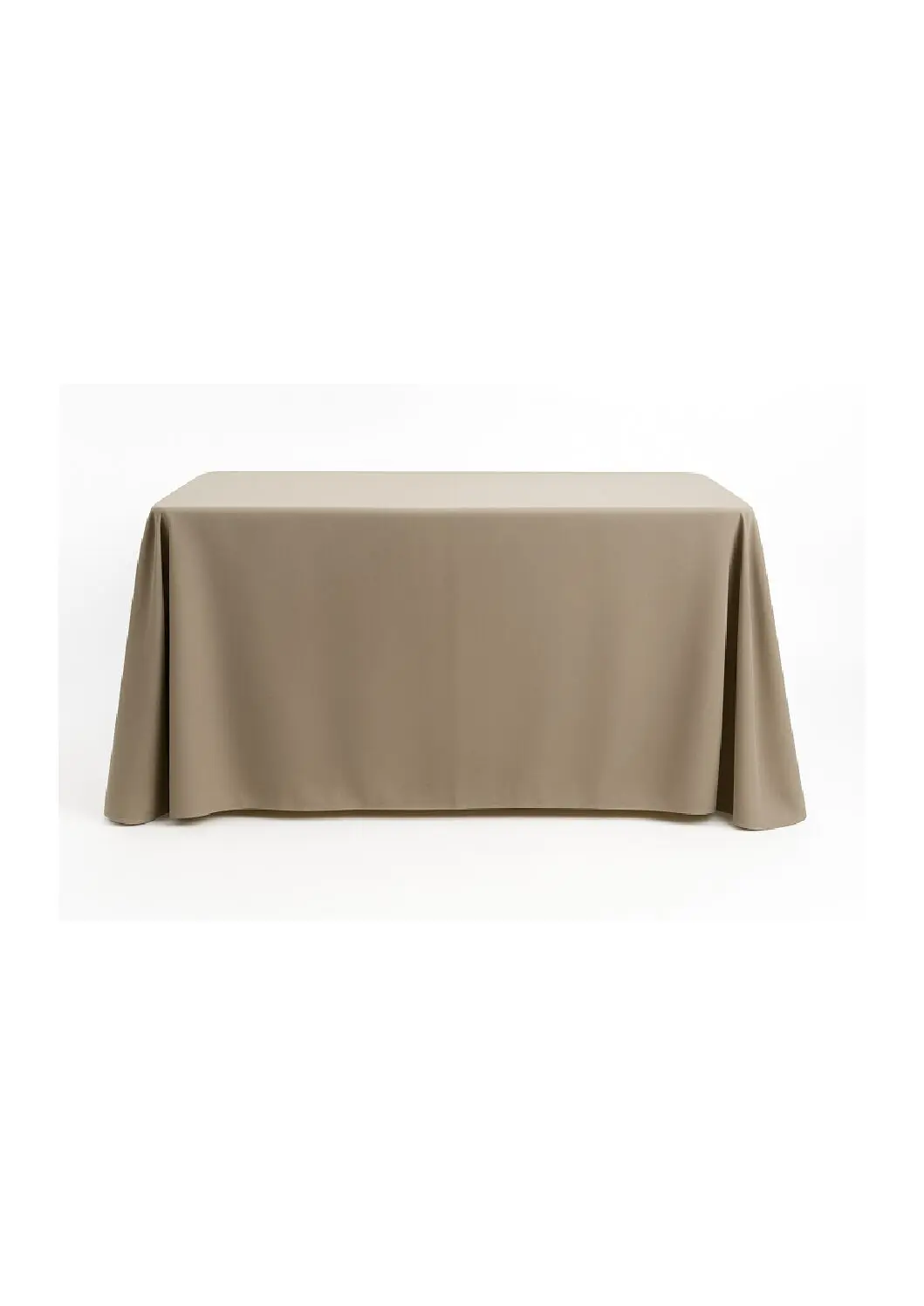 A plain Taupe cloth covers a 12.4m trestle table to the floor (153″ x 90″)